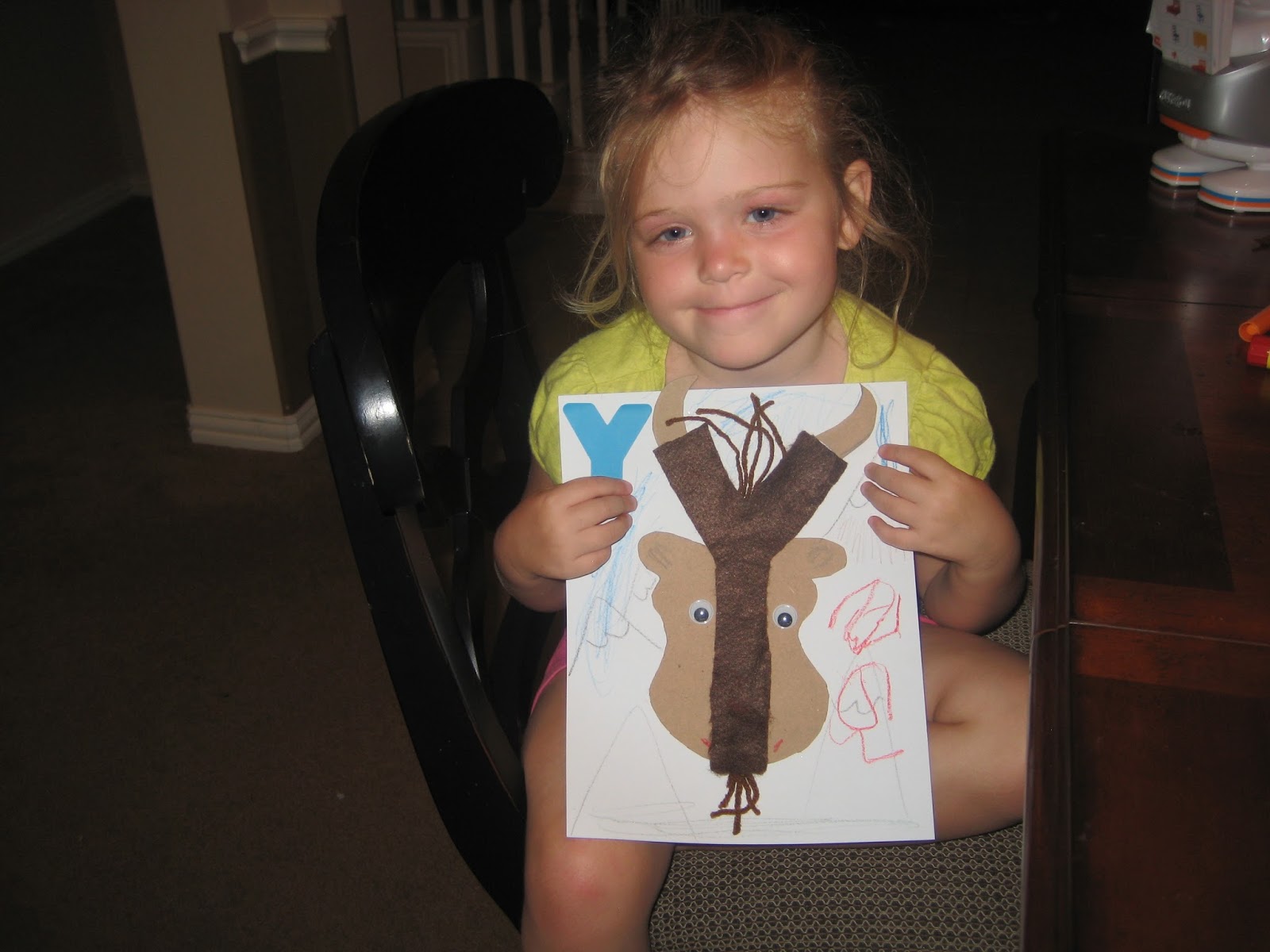 To wrap up our Y day, we made some yarn bracelets. I also cut some longer pieces of yarn for Myla to make "Y"s out of but I didn't take any pics.